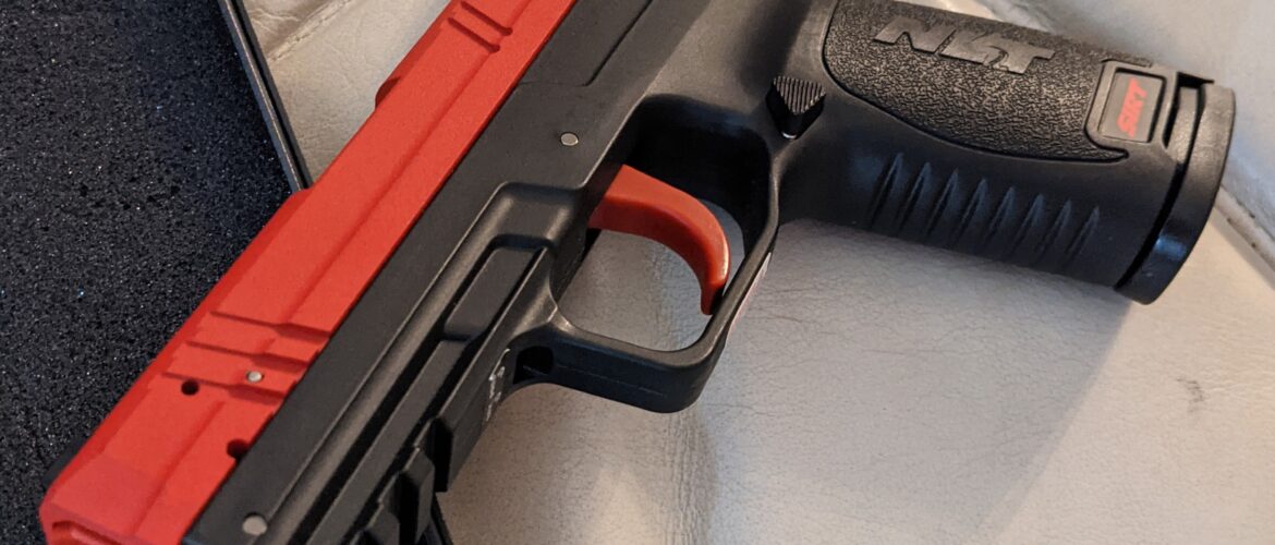 If you’ve never used a SIRT before, it’s really a fantastic training device. The weight and dimensions very closely match a real gun (in this case, a carry-length SIG P320), so you can use the same holsters, and the training is very realistic. The only difference is that the SIRT can’t fire actual ammunition; it “fires” a laser beam every time you pull the trigger. Couple that with some good software, like LASR X, and you can safely and easily practice shooting drills at home.